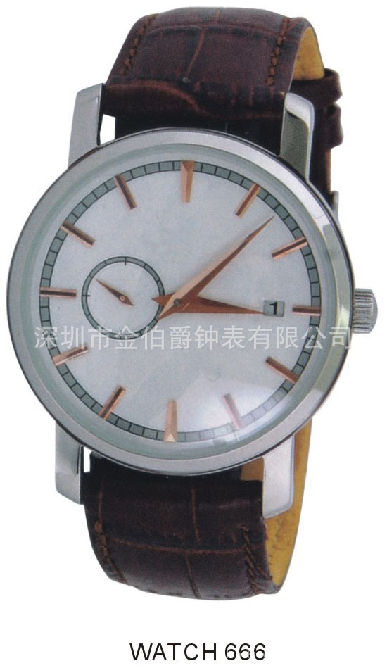 后盖材料:不锈钢后盖,可以做LOGO(激光或者腐蚀)镜面材料:玻璃表盘:免费设计和打上标志(LOGO)机芯:机械机芯电池:无功能:三针/六针,时间显示防水:生活防水/10米包含:表盘LOGO任意设计(根据具体要求)包装:单个表入一个气泡袋安全包装(木盒/塑胶盒/纸盒均可)打样时间:7-12天
