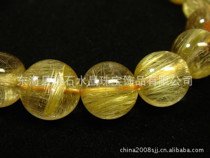 金发晶: 质地佳而少见的金发晶。极旺财运,加强自身气势,避邪化煞,有助于改善肠胃、肝胆等病症,其能量比其它水晶更为强大。 金发晶又有人称为维纳斯发晶,因为其金色的发晶酷似维纳斯一头柔软的金发而得名。是一种权威水晶,极具权势象征,因为它的气场能量极强,除了能辟邪外,还可可增强人体生物气场,增加胆识,实为进取心强烈,期望做大事者不可缺少的开运宝石。金发晶被认为能招财聚气. 正财偏财都招,磁场特强。