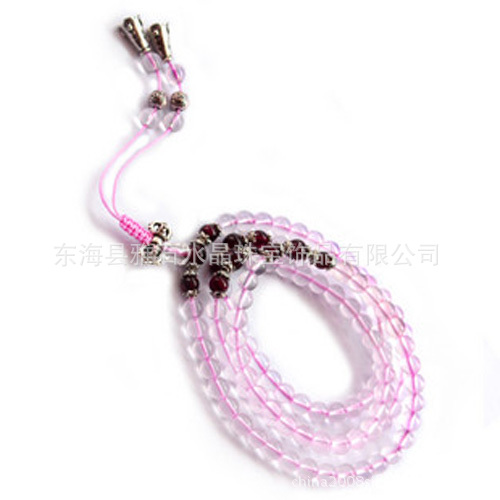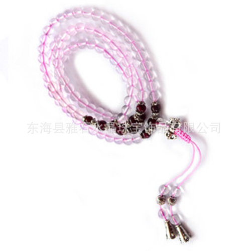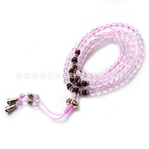 【名称】天然粉水晶+石榴石108颗佛珠手链 配藏银降魔杵 金刚铃