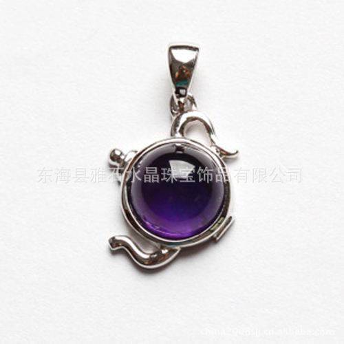925银镀白金天然紫水晶小茶壶吊坠【21X15X6MM][重量:1.8克】=85元