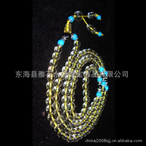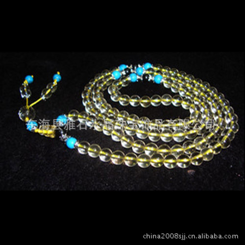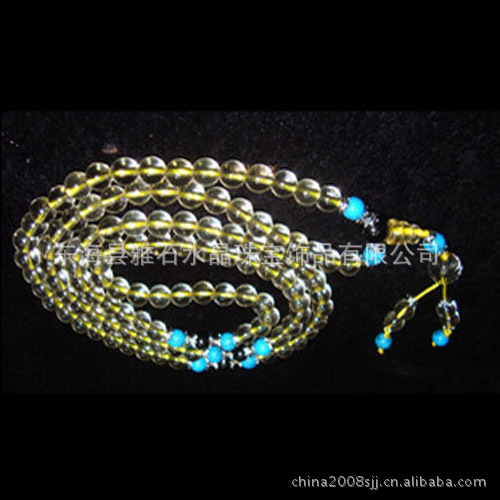 【名称】天然黄水晶+緑松石108颗佛珠手链
