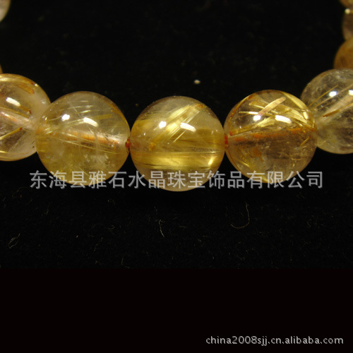金发晶: 质地佳而少见的金发晶。极旺财运,加强自身气势,避邪化煞,有助于改善肠胃、肝胆等病症,其能量比其它水晶更为强大。 金发晶又有人称为维纳斯发晶,因为其金色的发晶酷似维纳斯一头柔软的金发而得名。是一种权威水晶,极具权势象征,因为它的气场能量极强,除了能辟邪外,还可可增强人体生物气场,增加胆识,实为进取心强烈,期望做大事者不可缺少的开运宝石。金发晶被认为能招财聚气. 正财偏财都招,磁场特强。
