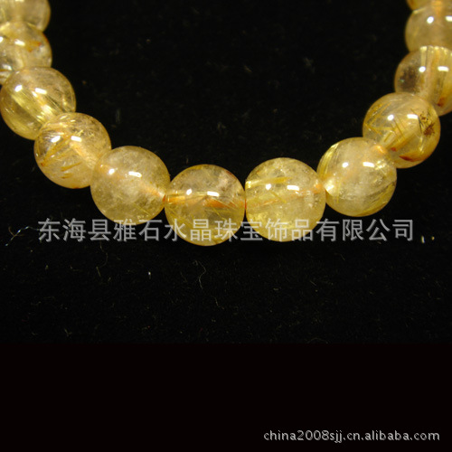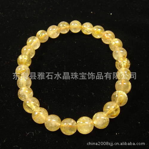 金发晶: 质地佳而少见的金发晶。极旺财运,加强自身气势,避邪化煞,有助于改善肠胃、肝胆等病症,其能量比其它水晶更为强大。 金发晶又有人称为维纳斯发晶,因为其金色的发晶酷似维纳斯一头柔软的金发而得名。是一种权威水晶,极具权势象征,因为它的气场能量极强,除了能辟邪外,还可可增强人体生物气场,增加胆识,实为进取心强烈,期望做大事者不可缺少的开运宝石。金发晶被认为能招财聚气. 正财偏财都招,磁场特强。