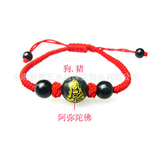 【名称】手编天然黑曜石属狗猪本命佛守护神【阿弥陀佛】化太岁吉祥物手链