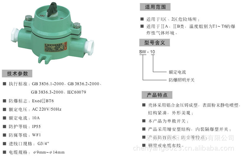 SW-10系列粉尘防爆照明开关(IIB)