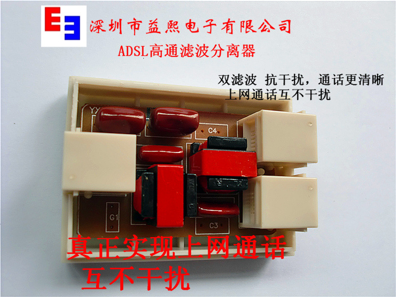 语音分离器,简称分离器(Splitter),应用于xDSL(xDSL是各种DSL的统称,即数字用户线路,是以传统电话铜线为传输介质的传输技术,其中x代表不同种类的DSL技术,包括ADSL 2+、HDSL、VDSL等)的宽带通信中。我们常说的分离器只是指ADSL(Asymmetrical Digital Subscriber Line非对称用户线路)分离器,即基于传统语音电话线路上共线传输宽带数字信号的语音分离器(即ADSL over POTS Splitter),现在ADSL已升级到新版本更高速率的ADSL++和VDSL(Very High Speed Digital Subscriber Line甚高速数字用户线)。