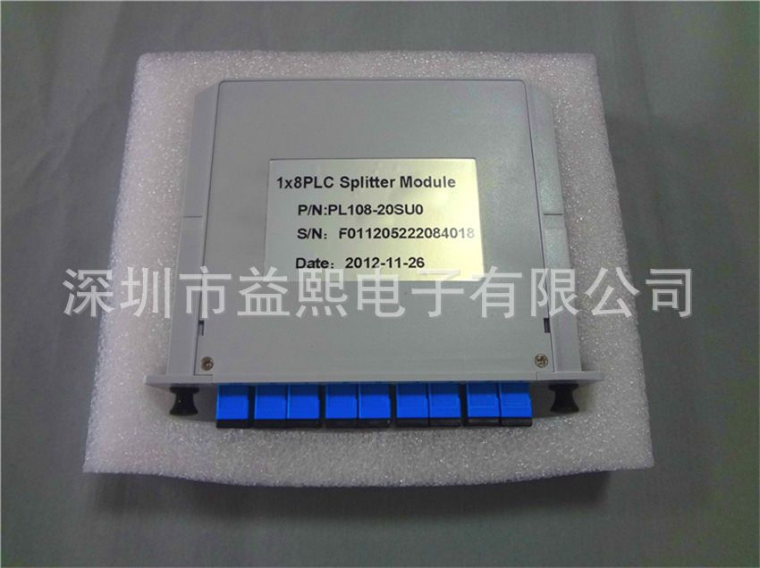 插片式PLC使用ABS塑料盒封装,端口采用成端式。主要安装在光纤交接箱中。