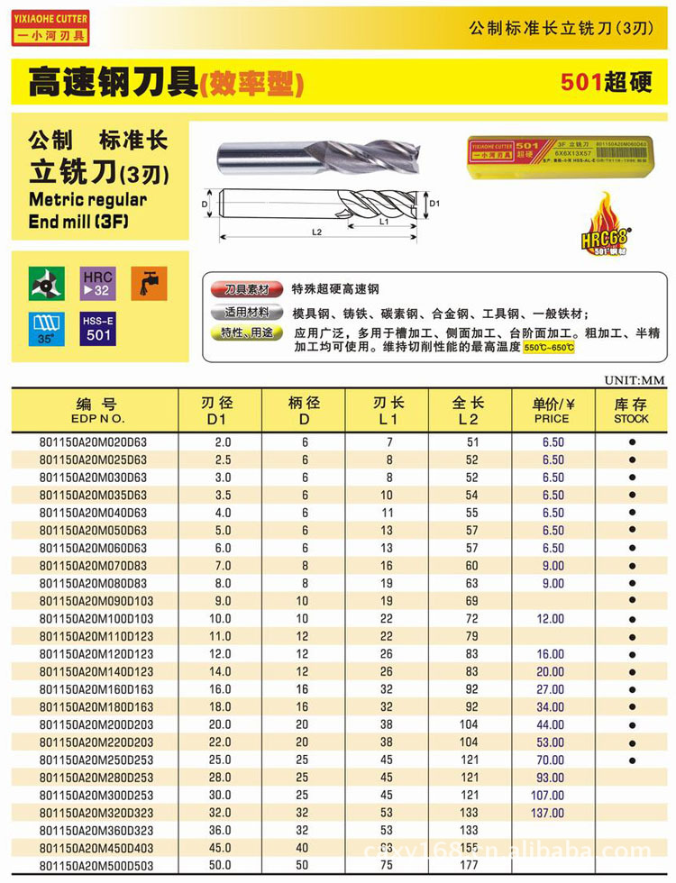 注:以上是贵阳高速钢刀具Φ6.0~50普长 AIA 3刃立铣刀相关介绍及报价,假如贵司在此没找到适合的请点击更多.....