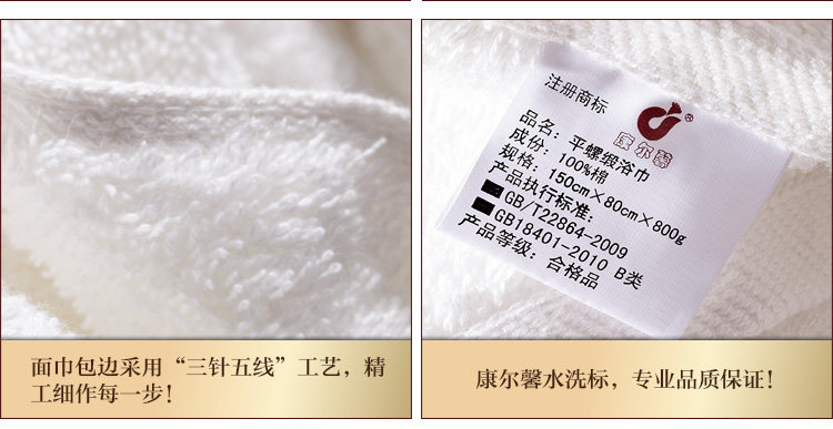 康尔馨 五星级酒店浴巾 纯棉 加大 厚 缎档绣花 柔软吸水大浴巾