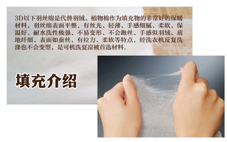 3、采用独家星级酒店的羽丝棉,纤维细 手感柔软细腻。