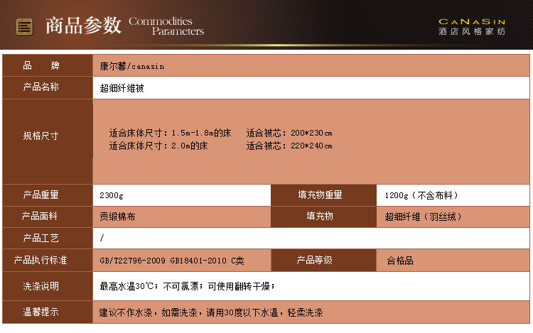 康尔馨 羽绒被90%白鸭绒被 冬被 加厚 羽绒被 单人五星级酒店床品