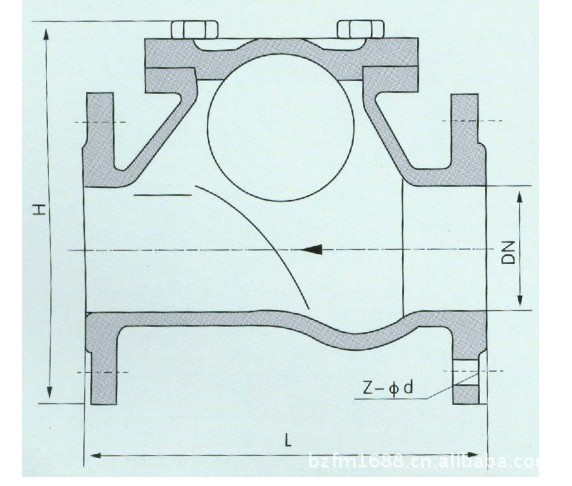 概述:滑道滚球式止回阀采用了橡胶包皮滚球作为止回阀瓣特点,在介质或介质压力的作用下,可在阀体内的整体式滑道上作上下滚动,从而打开或关闭阀门,密封性能良好,消声式关闭,不会产生水锤。HQ41X滑道滚球式止回阀的阀体设计采用全水流通道,流量大,阻力小,水头损失比旋启式小50%,水平或垂直安装均可,可用于冷水、热水、工业用水及生活污水管网,HQ41X滑道滚球式止回阀更适合安装在潜水排污泵的进出口,介质温度为0~80℃。为了防止介质逆流,在设备、装置和管道上都应安装止回阀。