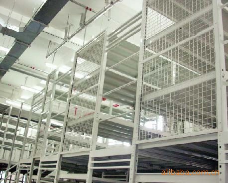 阁楼式货架,广泛应用于库房较高,货物品种较多,批量轻小的情况下,可提高场的空间利用率,,通常可设计为二层或三层阁楼,一般中量阁楼承载为200-350kg,重量型阁楼承载为400-1200kg。货物提升方式通常分为:人工,升降平台,输送带及叉车等。