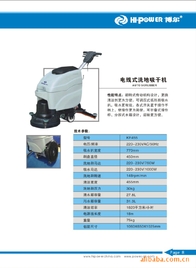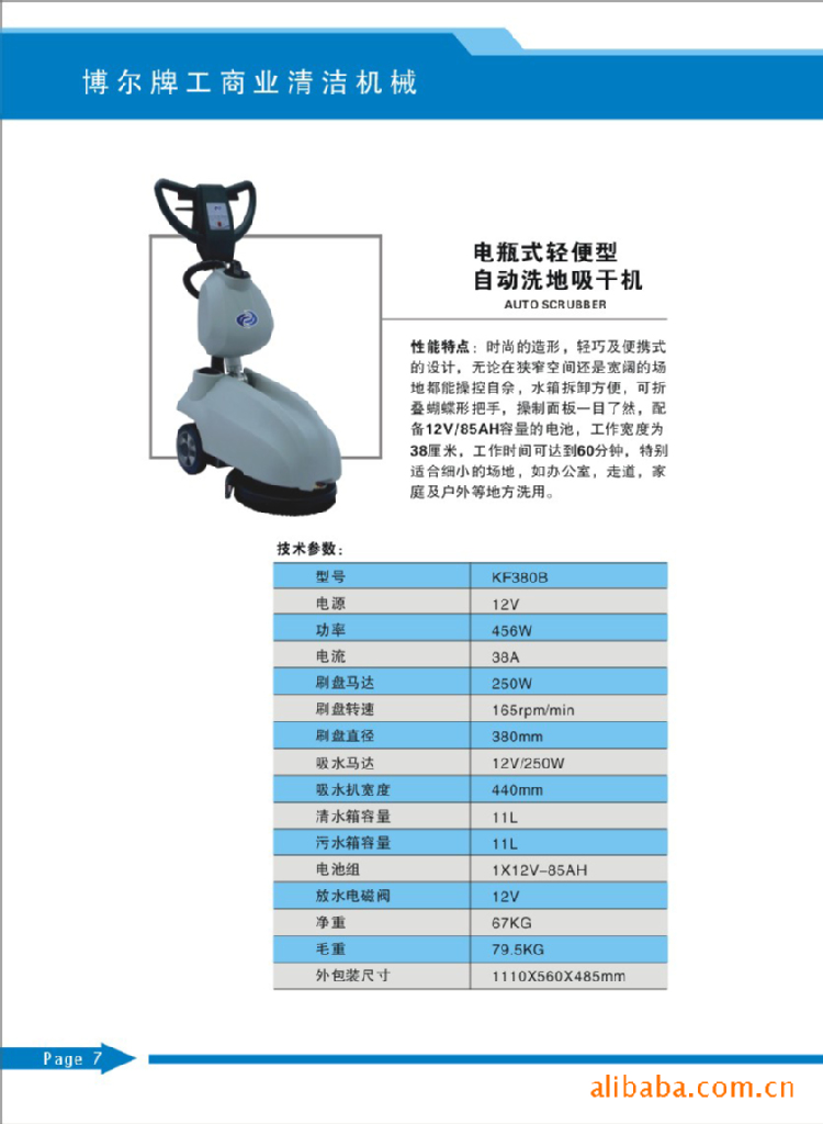 供应博尔电瓶式轻便型自动洗地吸干机(型号:KF380B)