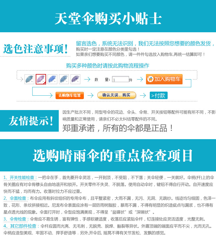 天堂伞是由杭州天堂伞业集团生产的国内伞。包括雨伞,太阳伞等多个品种。天堂伞素以轻、新、牢、美而著称,产品质量和技术工艺在全国制伞行业中处于领先地位,在国内外市场享有很高的声誉。