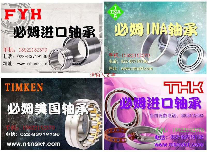 天津必姆轴承销售日本NTN轴承,日本NACHI轴承,日本KOYO轴承,瑞典SKF进口轴承,德国INA轴承,美国TIMKEN轴承等多种品牌轴承。进口轴承适用于钢铁冶金,港口机械,石油化工,汽车制造,机床造纸等多个行业史凯孚进口轴承公司凭着公司产品的价格优势与质量优势,现已发展成相当规模的轴承贸易公司。公司货源充足,全天候送货本公司拥有一批专业高技术人员,融合国际大公司的经营管理模式及企业文化,积极开拓市场,便于向各界用户提品。联系人:冯小姐 电话:83719136手机:15822152370 传真:58391098 QQ:894463103 www.ntnskf.com www.nachi-ntn-nsk.com/