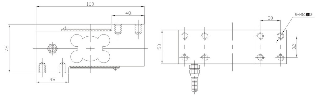 该传感器弹性体采用剪切或弯曲悬臂结构,一端固定、一端受力。结构强度高,可用于各种拉伸力和压缩力的承载和测量。具有防尘密封、量程范围广、精度高、性能稳定可靠、安装使用方便等特点。适用于电子秤、衡器等各种测力、称重的工业自动化测量控制系统。