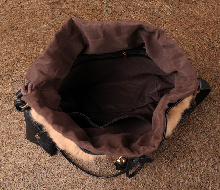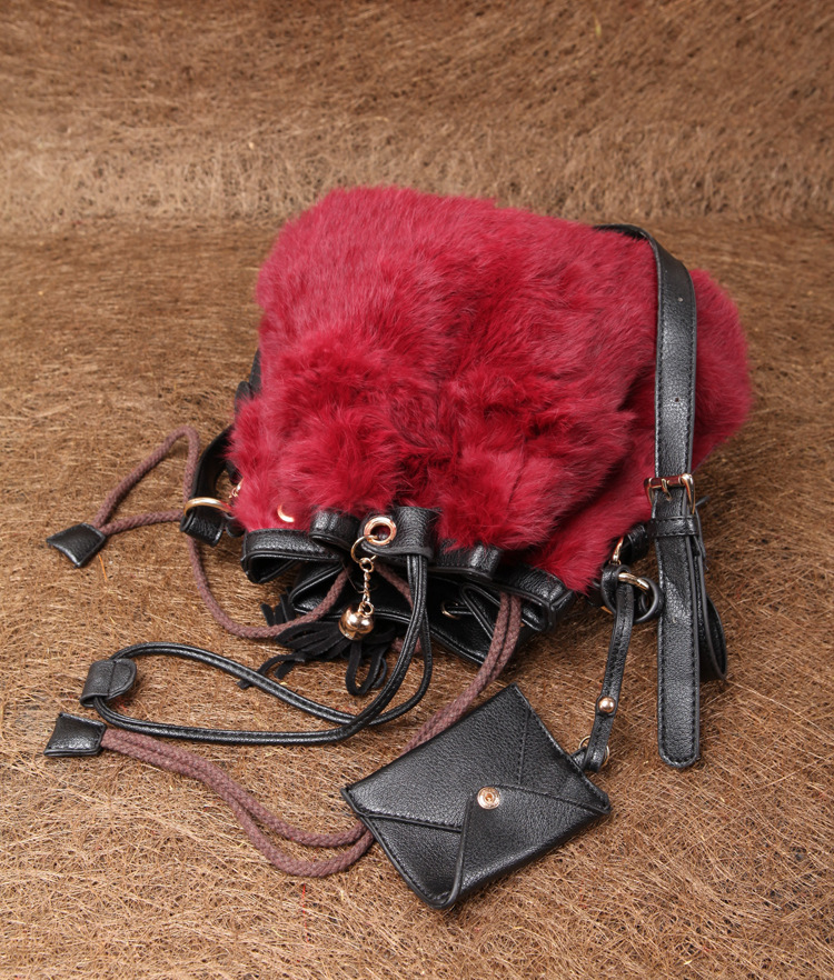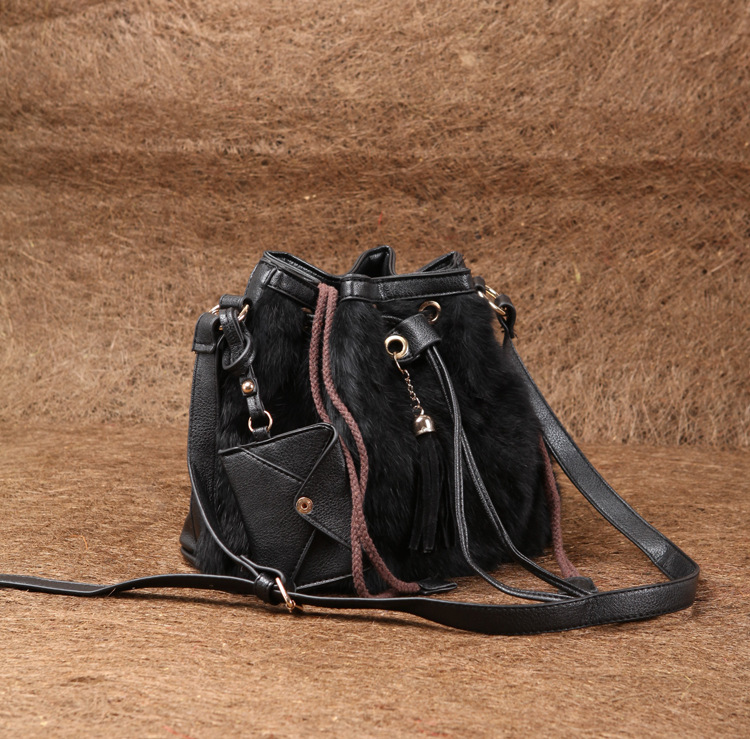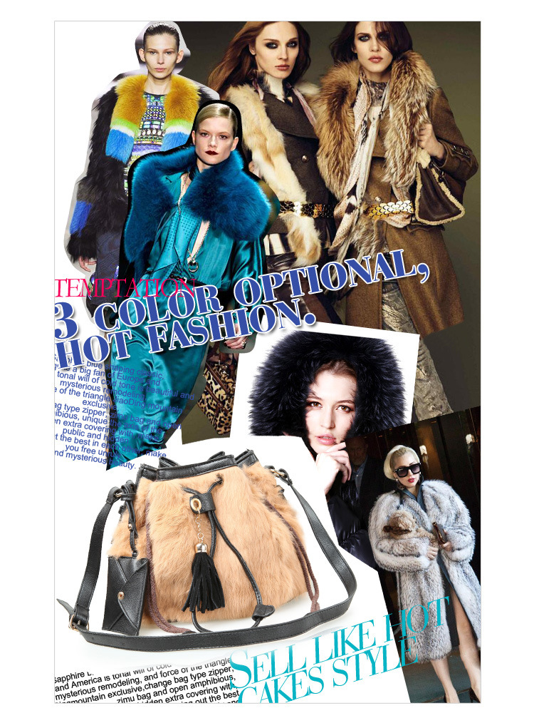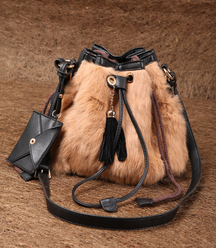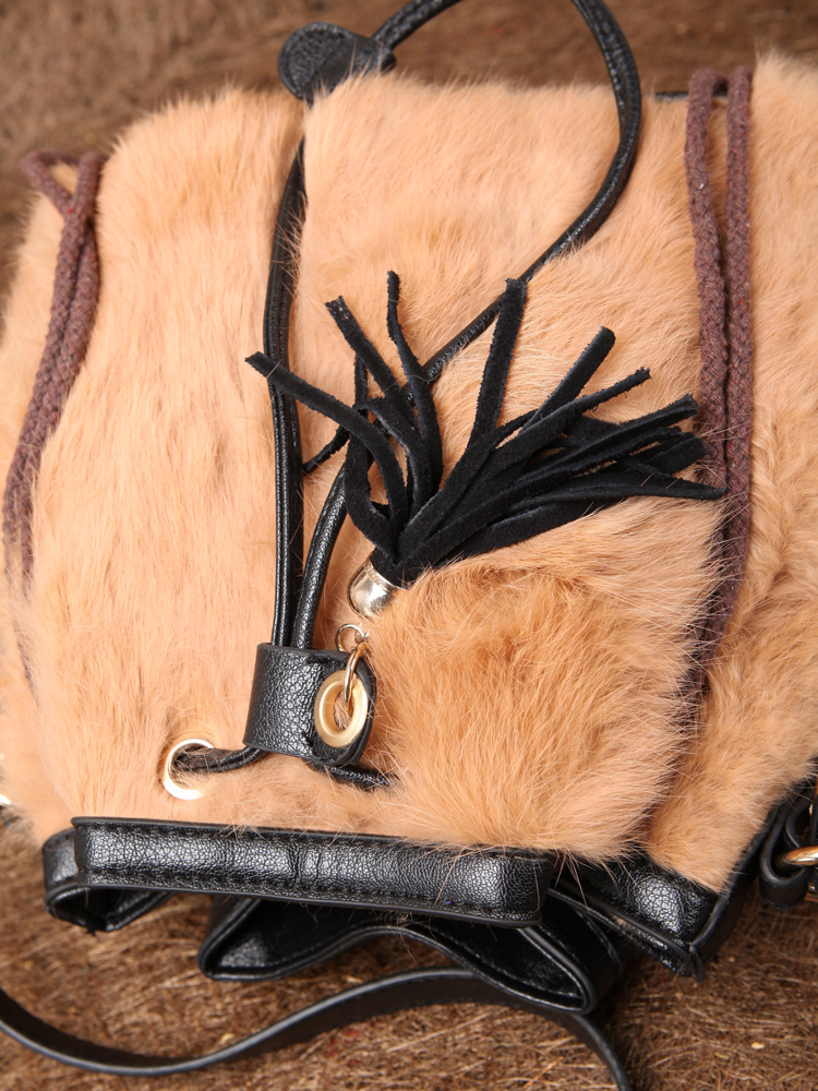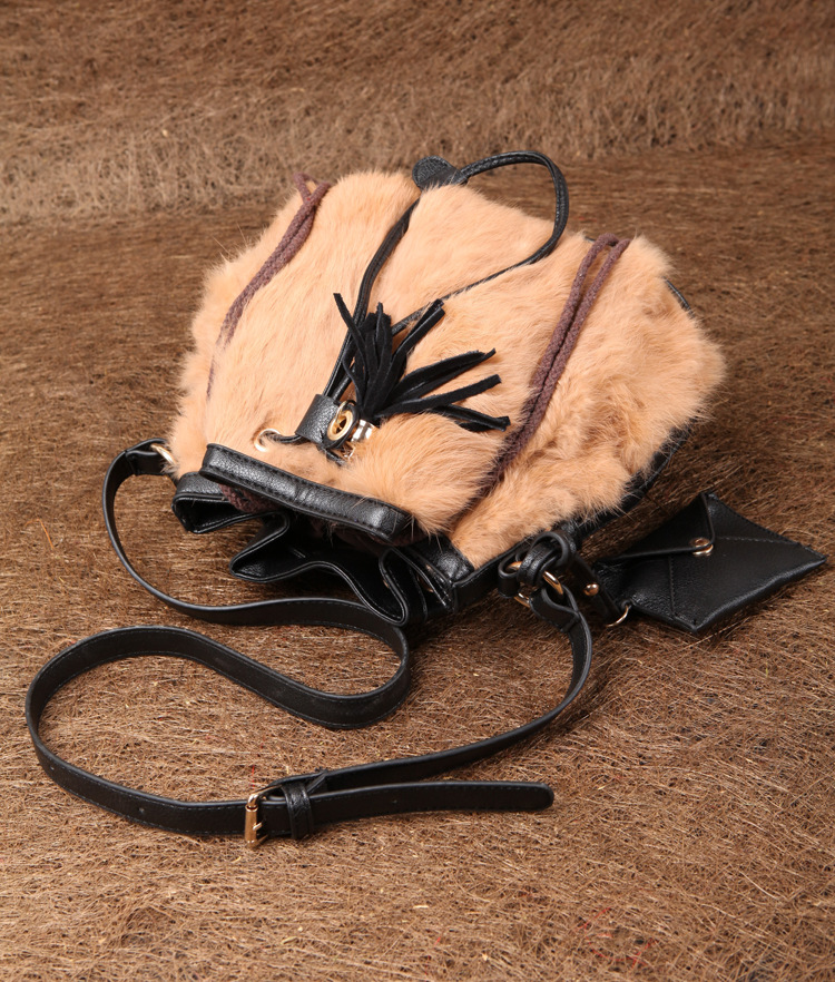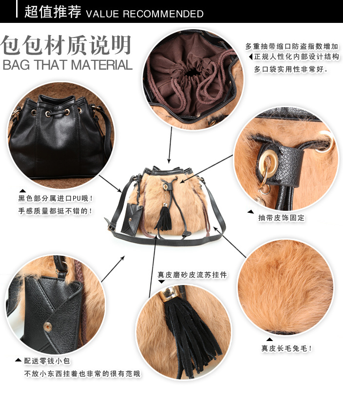 2013新款韩版纯兔毛南瓜水桶皮草包牛皮包紫色单肩斜跨女包流苏包