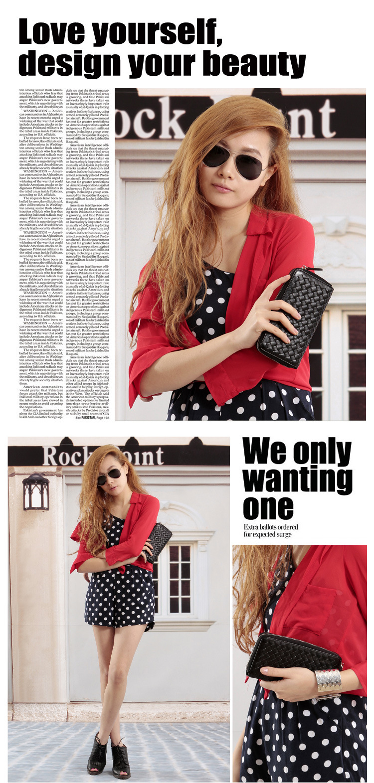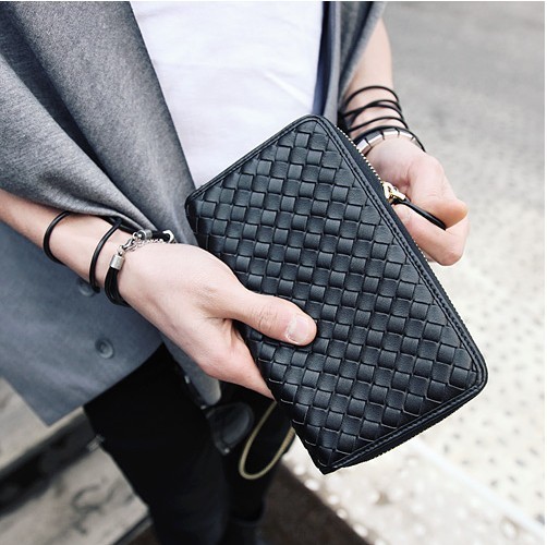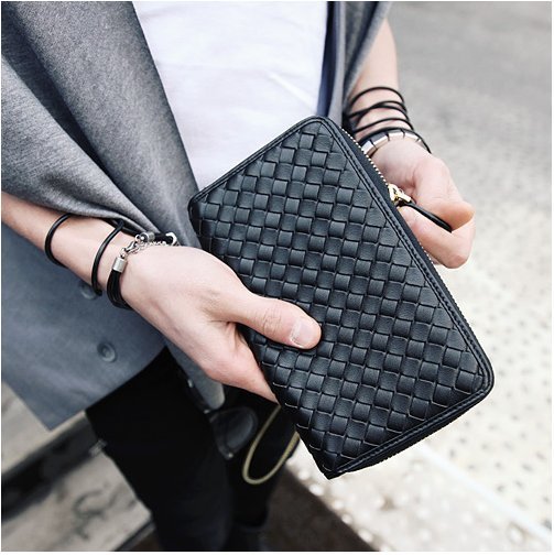 潮流钱包 韩版钱夹 男女皮夹 编织钱袋 拉链 中长款钱包