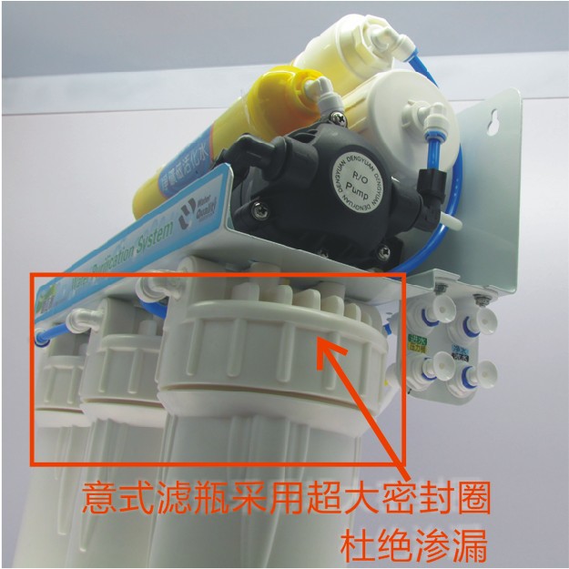 碧汇牌净水机产品所用材料全为优质材料,RO膜采用韩国进口的CSM世韩膜,接头为台湾快速接头,二分PE管为碧汇源专用的BHUIY管,水泵为台湾邓元泵高压静音泵、噪声低、振动小(可选配三角洲泵。)