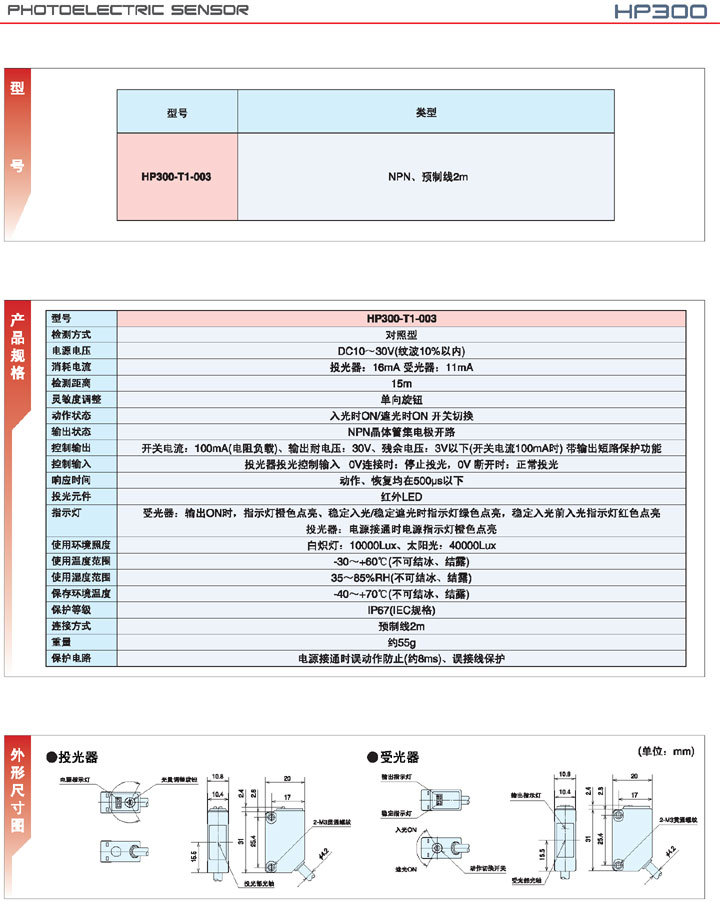 yamatake 山武 光电传感器 HP300-S2 近距离漫反射型 PNP输出