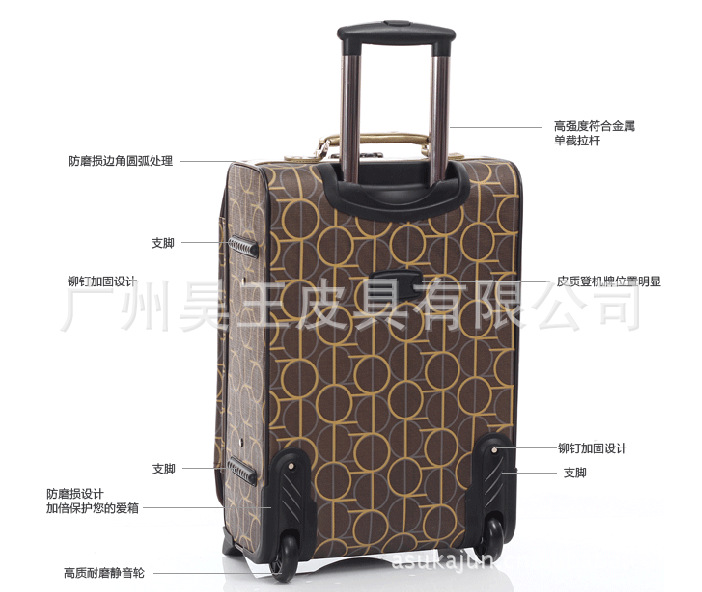 广州昊王箱包有限公司是一家集生产为一体私营有限责任公司,毗邻白云机场,从白云机场到我司不到20分钟车程,交通便捷。公司创办于2007年,现注册资金50万元,固定资产3000万元,,厂房面4000多平方米,月产量可达30万只,是一家专业设计、生产各式箱包手袋皮具的专业生产厂。本公司具有丰富的生产经验,除生产自主研发设计的产品外,同时还可以根据客户需要设计和生产产品。经研发人员的长期努力,公司产品现已经有300多个品种,如箱包、拉杆箱、ABS拉杆箱、PC拉杆箱、商务登机拉杆箱、旅行箱、电脑袋、航空箱、拉杆背包、公文包、拉杆箱、、PC箱、登机箱、拖轮箱、圆点拉杆箱、ABS拉杆箱、新秀丽品质箱包、明星箱包、经典箱包、阿童林箱包、航空箱、皮革箱、儿童拉杆箱、工艺箱包、模特箱包、学生书包、手提包等。产品远销日本、香港、台湾、全球、奔驰、台湾雅芳是我司长期合作的顾客,不断提高产品档次,保证产品质量是公司200员工追求的永恒目标。欧美等国家和地区,公司本着以诚实!守信的原则!深受顾信赖! 本厂拥有优秀的设计生产销售队伍,能把专业知识与市场紧密结合,不断开发出既有特色又受市场欢迎的新产品,使我们的产品一直走在同行的前列,具有较强的竞争力。生产部门实行科学化管理执行国家标准,各环节紧紧配合,产品每针每线都必经严格质检,产品质量一直得到客户肯定。
