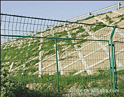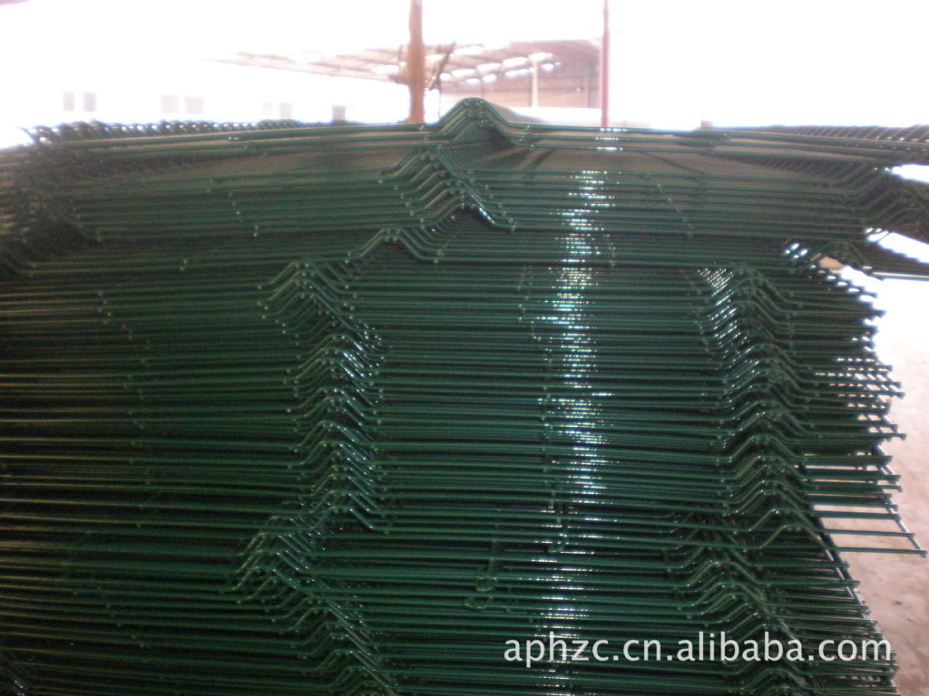 双边丝护栏网是一种采国国产用优质冷拔低碳钢丝,PVC丝焊接成的隔离护栏产品,用连接附件与钢管支柱固定。有兰,绿,黄等颜色。