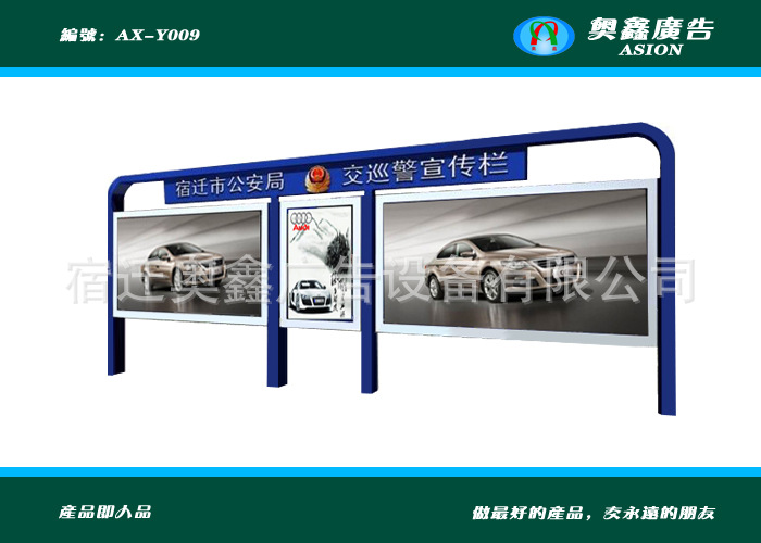 公司以“诚信为本、质量第一、客户第一”为原则,以一流的产品引导市场,与国内众多广告公司、政府单位建立了稳定的业务合作关系,得到了客户的一致好评,江苏奥鑫广告设备有限公司热诚欢迎您前来我公司参观、洽谈合作。 欢迎来电预约公司2011版产品图册,咨询电话:0527-80865888或18936956011。