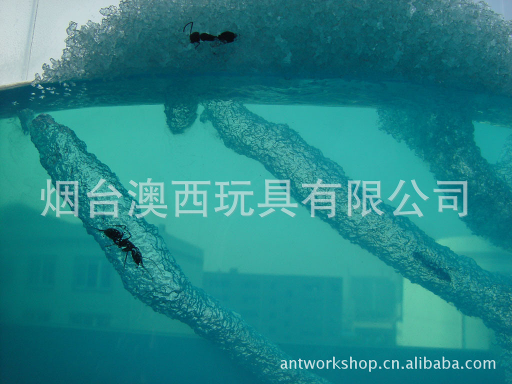 烟台蚂蚁工坊是国内首款高科技生态玩具,获得中国玩具协会2006年度“中国最佳特色玩具”奖项. 蚂蚁工坊曾被美国《时代》杂志评为20世纪最有创意的发明!蚂蚁工坊系列, 提供了一种独特的研究蚂蚁的人工生态环境,在晶莹剔透的容器里灌注了蓝色梦幻般的凝胶,它提供了蚂蚁维持生命的水和营养物质。玩家可以全方位的清晰的观察到蚂蚁构筑三维空间隧道的全过程, 和观察到蚂蚁工作、交流、休息、哺喂、争执等等,了解到地球上数量最多的昆虫——蚂蚁的生活秘密。 每个细节都会给你带来意想不到的感受。勤奋工作的蚂蚁,更是展现了大力士的风采,让您感动!