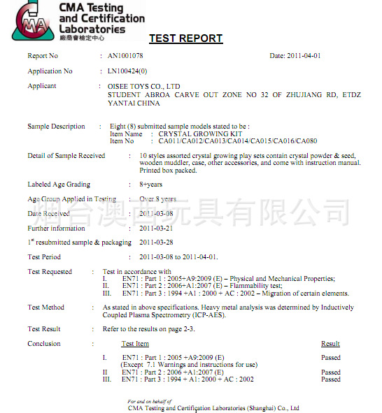 对产品有些了解后, 您一定会问, 产品的配置里面有各种料包, 料包里面是粉末, 在制作过程中 , 会不会对孩子有不安全的隐患呢?这个问题, 请大家放心好了, 澳西玩具在产品设计时已有考虑, 同时在原材料采购上采用严格的筛选和评估检测制度, 保证采用的原料的安全性。 这个系列产品, 烟台澳西已经出口多个国家和地区, 包括东南亚, 欧洲,澳大利亚等, 进口国对玩具安全的高标准是众所周知的, 我们不仅积极定期把产品交到大型权威的商检机构检测, 还积极配合进口国对提供符合本国玩具检测标准的要求,保证产品能够多国的安全检测标准。