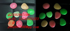 彩色夜光石/彩色夜光鹅卵石生产厂家/彩色多彩的夜光鹅卵石通透发光,静谧深邃,夜色中为建筑本身增添超常神秘色彩及无限浪漫情调!洗手间、露天花园、楼梯线、地脚线、腰线、墙裙线、停车场、消防通道、地面指示分界线、园林花基、甬道边线灯、游泳池、影剧院、游乐场(恐怖屋)、花台水榭、庭院楼阁、庙苑寺宇、Disco舞厅、溜冰场、酒吧、俱乐部等等,尤其夜晚周边环境较黑情况下及在户内墙壁、地面的应用中,发光效果更为突显。设计施工中如果辅助匹配紫光灯、节能灯、日光灯进行针对性照射,在刚刚关灯后,建筑物本身会有翡翠玉石一般晶莹剔透的感觉,通透发光,静谧深邃,夜色中为建筑本身增添超常神秘色彩及无限浪漫情调。