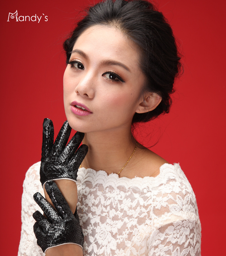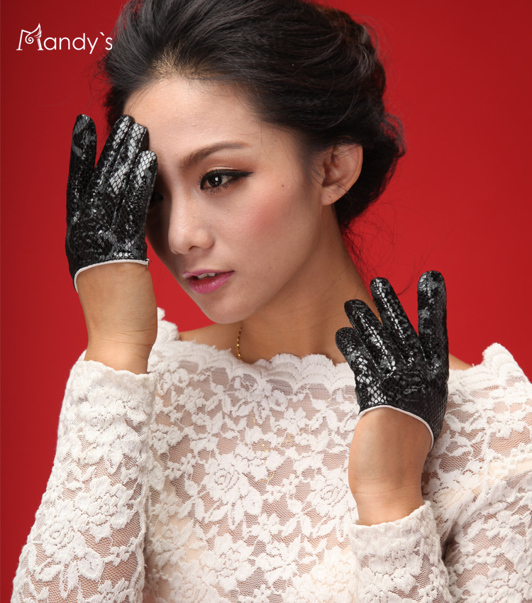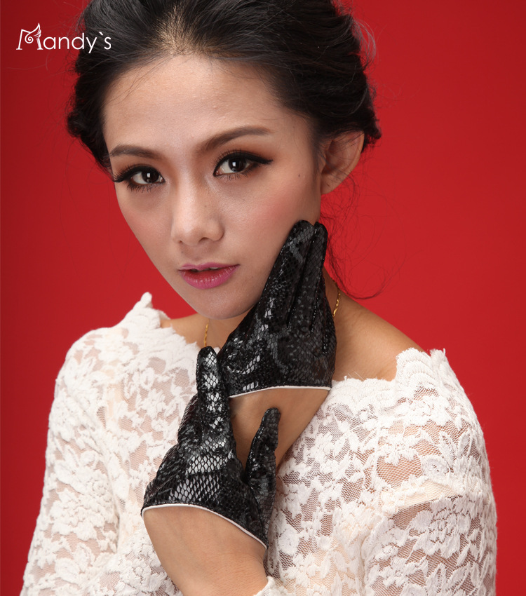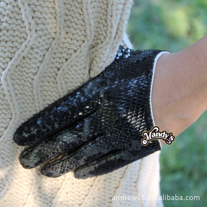 女式手套 欧美时尚蛇纹短款半掌 女士真皮羊皮手套