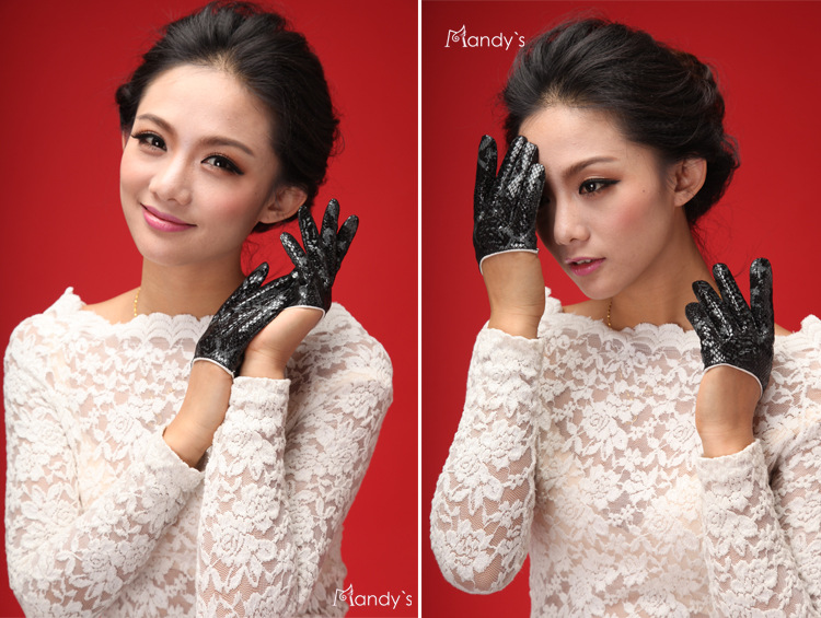 欧美风 黑白配色经典女式羊皮手套 真皮时尚手套
