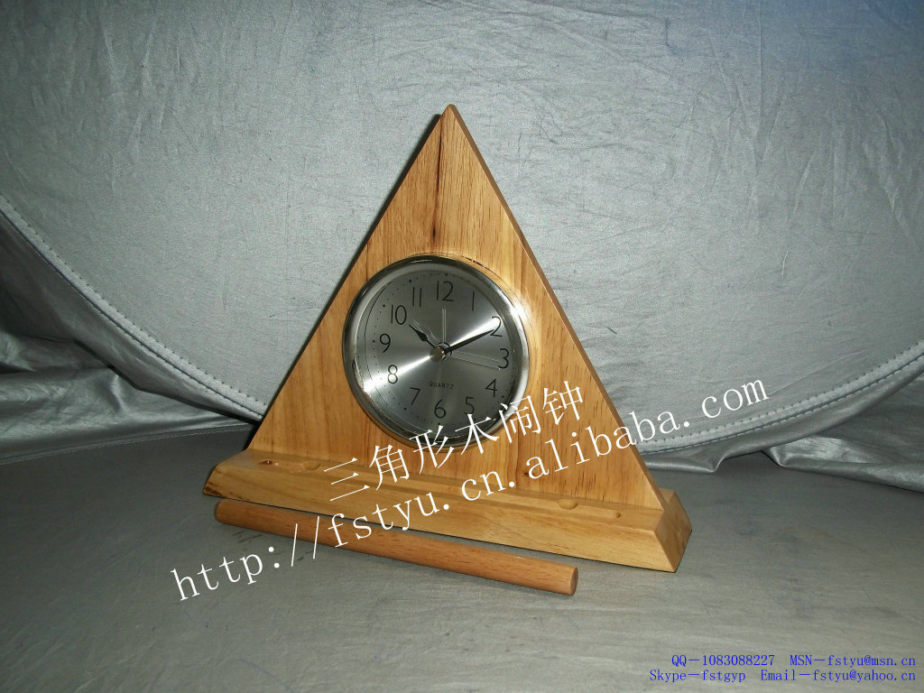 | 新奇天然橡胶木 钢琴漆 电源常规5号电池 闹铃静音跳秒 工艺木钟 |