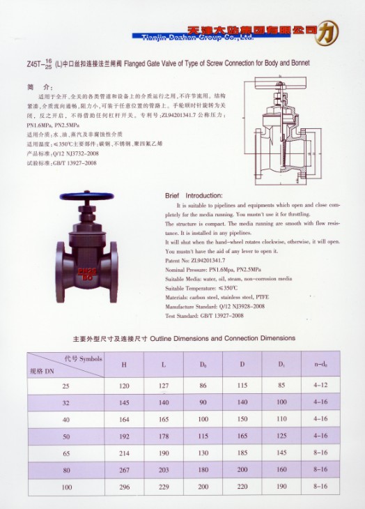 厂家直销/闸阀/Z45T-16/天津大站阀门