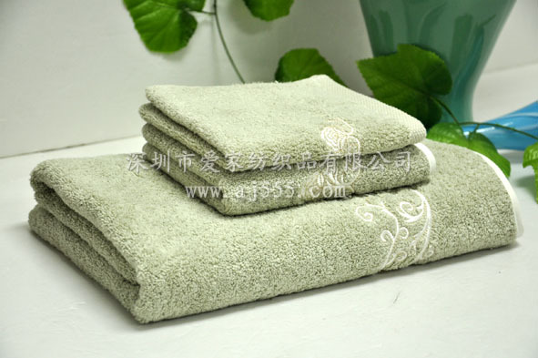 毛巾是以纺织纤维为原料表面起毛圈绒头或毛圈绒头割绒的机织物,一般以纯棉纱线、超细纤维、竹纤维等为原料,少量有掺用混纺纱线或化学纤维纱的。用毛巾织机织制而成。按织造方式分有针织和梭织两类;按用途分有面巾、枕巾、浴巾、毛巾被、沙发巾等;此外,还有毛巾布,用作缝制衣着。表面毛圈密集,手感柔软,吸水储水性强,耐磨、保暖性能好。常见的花色有全白毛巾、素色毛巾、彩条毛巾、印花毛巾、丝光毛巾、螺旋形毛巾、提花毛巾和提花印花毛巾等。用于洗擦可直接与人体接触的纺织品(如方巾、面巾、浴巾、毛巾被等)。圈售热量以