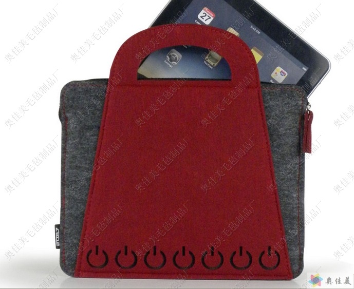 厚实的毛毡材料相比其他材料做的内胆包抗冲击能力更强,防滑效果更佳,从保护电脑安全方面考虑也是您的上上之选。这款Ipad包时尚的设计风格,给你带来新的视觉享受,同时又给你心爱的Ipad加上一层坚固的保护层,让你的Ipad更加安全。奥佳美专为追求时尚的OL设计,简约的风格再配灰、绿或红撞色,使整个包包看起来简约而不简单,全方位满足办公、商务的要求,适当的搭配,体现主人独特的职业品味,拿出电脑的瞬间让客户眼前一亮。无论是作为亲友馈赠,还是会议礼品、商务礼品,都是最佳之选。彰显出淡定而高雅,简约不失奢华的精致生活。 优质毛毡材质结实耐用,回收率可达100%,有利于环保; 不可水洗,请用湿抹布轻轻擦拭。 我们可根据您的需要定做各种毛毡包包。欢迎新老客户洽谈合作!0319-5350679 扣1575799962 在推崇低调奢华,高调情趣的今天,奥佳美毛毡制品厂力求创造出一个低碳环保的社会环境。简单的毛毡布在设计师的巧妙构思和独具匠心的设计下,打造出现代感十足的都市时尚风情,为简单的生活赋予了绚丽多彩的青春活力气息。 毛毡不仅防水、结实、轻便,且由于其本身的独特元素构造,使得其轮廓出奇的简洁利落,对于后现代进化得有点过分以至于想返璞归真的人类来说,有种自然韵味。毛毡是极有设计风格的。随着切割机把毛毡塑造成我们想要的包、钱夹、手机套等等物件。现代简约、追求时尚和潮流、实用兼备。无论是作为亲友馈赠,还是会议礼品、商务礼品,都是最佳之选。彰显出淡定而高雅,简约不失奢华的精致生活。 我们可根据您的需要定做各种毛毡包包。欢迎新老客户洽谈合作!
