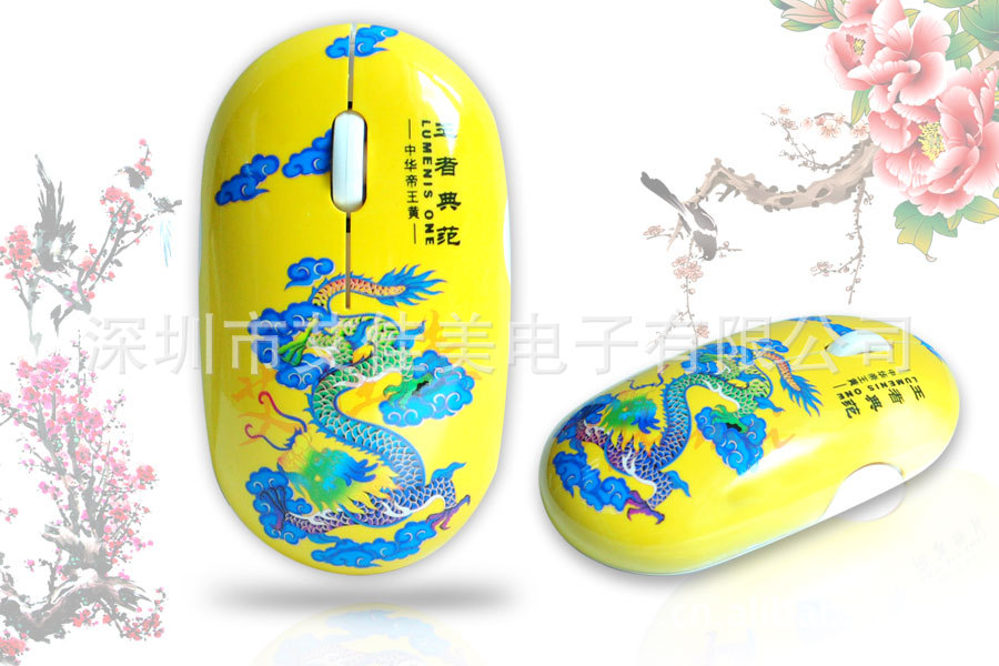 水转印青花瓷/红瓷帝王黄无线光电鼠标:
