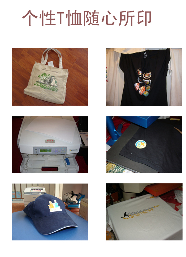 此款转印纸专用于喷墨打印机打印图案然后转印各种面料上,普通的水性染料或颜料墨水即可使用,不需采用烫画专用墨水即可防水,广泛用与服装纺织品面料如:(运动服,T恤,帽子,背包,文化衫,礼包,挎包,鼠标垫等)等涤/棉材料上,色彩鲜艳,耐洗度好。