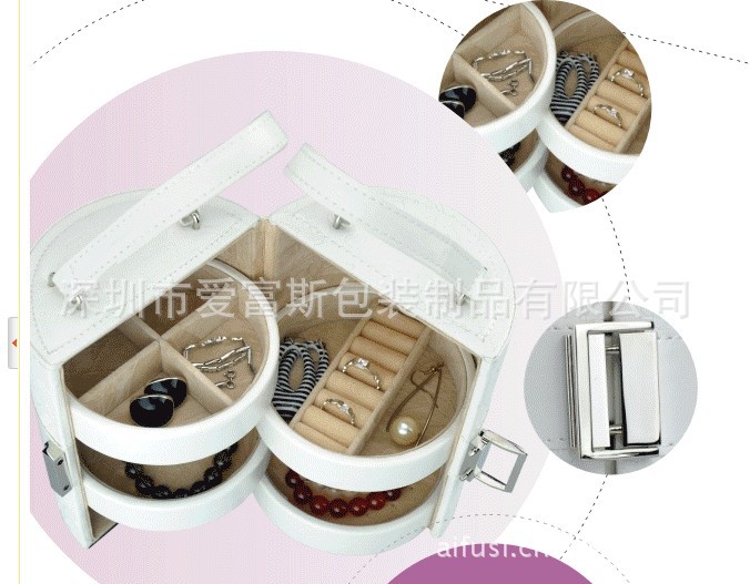 爱富斯精美首饰收纳盒圆形 戒指手镯项链珠宝归纳手提礼品收纳盒