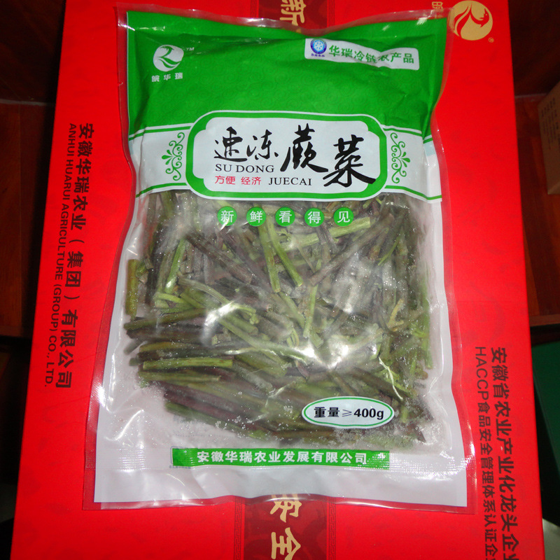 采用速冻加工工艺,新鲜蔬菜在零下38度,速冻40分钟到60分钟,使蔬菜的中心温度迅速下降,更有利于产品的保鲜,解冻后,速冻蔬菜相当于新鲜蔬菜,非常新鲜,不破坏蔬菜的营养成分,口感非常好。