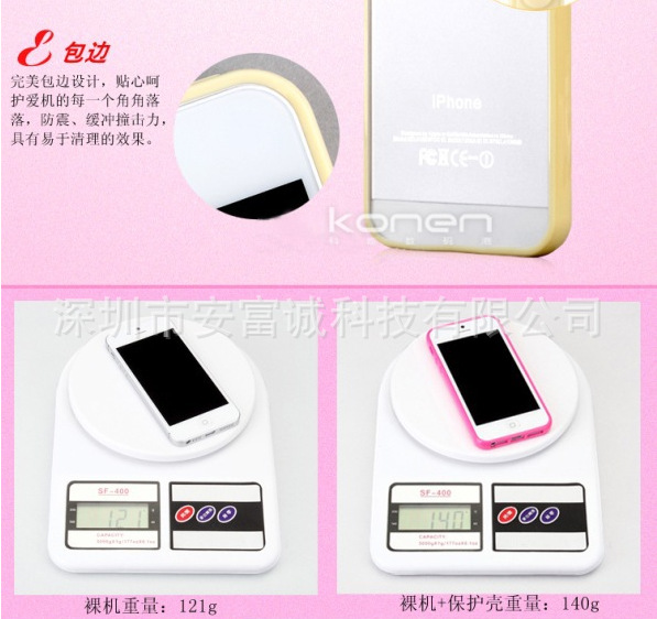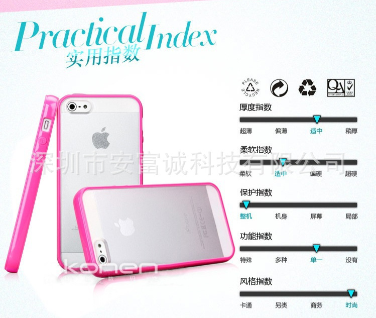 根据实物机体尺寸量身订做,紧贴保护机身,适用IPHONE 5。