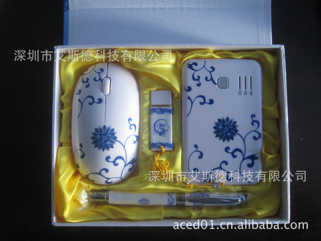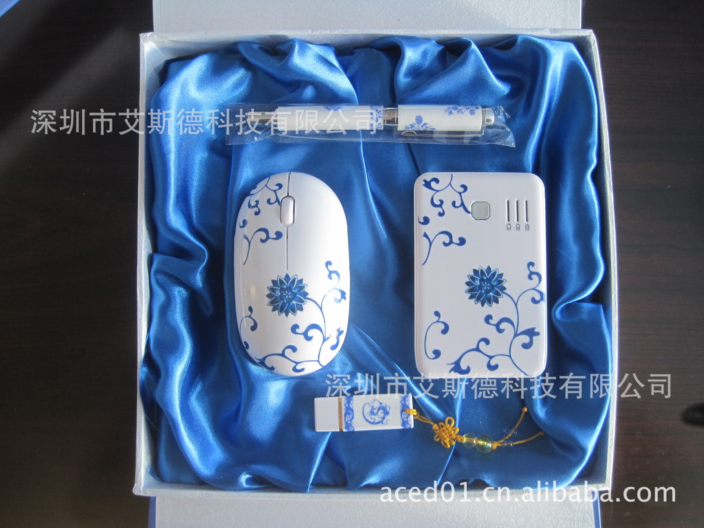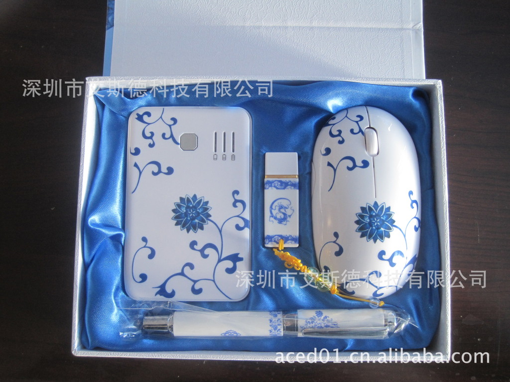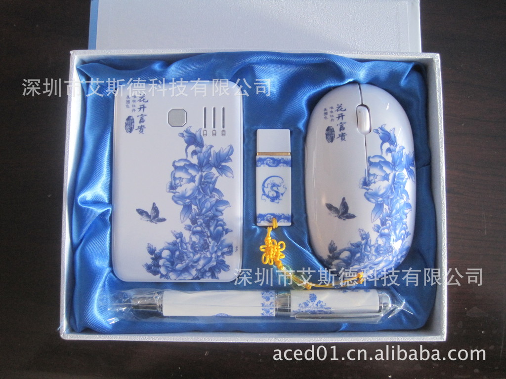 青花瓷商务三件套(陶瓷笔+U盘+无线鼠标) 适应于学校礼品、校庆礼品、国际品牌、金融保险、文化机构、政府机关、外资企业、营销、IT通讯的商务、公关礼赠品、各公司会议、商务礼品赠送等