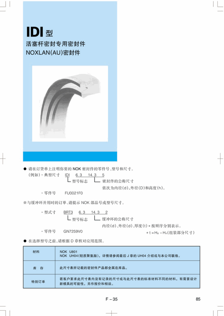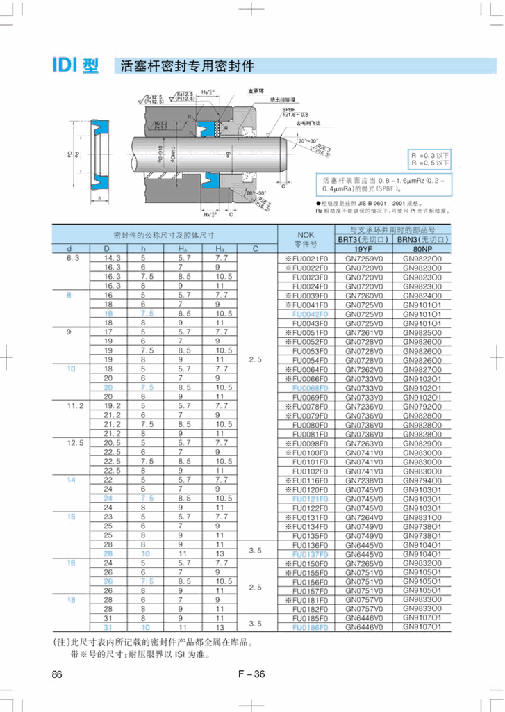 NOK活塞杆和活塞用密封件 UPI活塞和活塞杆密封