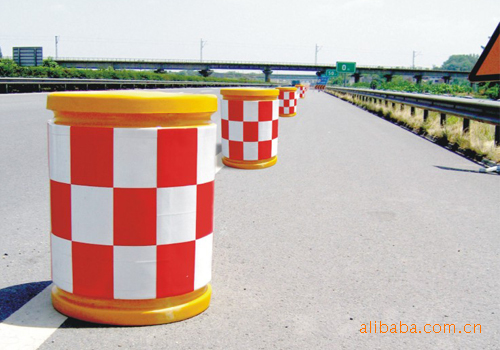 防撞桶表面贴有的反光膜,白天和夜间都明显可视,可以起到警示防撞的作用。对车辆的意外碰撞能够起到缓冲的作用,使车辆受到的伤害降到最低,极大地减小事故的损失