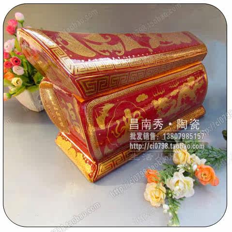 此产品由高白泥,高白釉精制而成,上面的浮雕和图案均为手工精制,具有极高的欣赏价值和收藏价值。陶瓷骨灰盒有罐形,有方形,有棺形,三大系列,二十多个花样,它耐酸,耐腐,耐氧化,不怕虫蛀,不怕鼠咬,百年后颜色不变,仍像新瓷一样。不但可以土葬,而且可以存放。让逝者安睡在九泉之下,不用担心骨灰盒会烂,造型独特,款式庄重,能满足各民族习俗的需要,所以说:从长远来看,高温颜色釉陶瓷骨灰盒是安葬死者的最佳选择,而且是殡葬领域今后发展的方向!