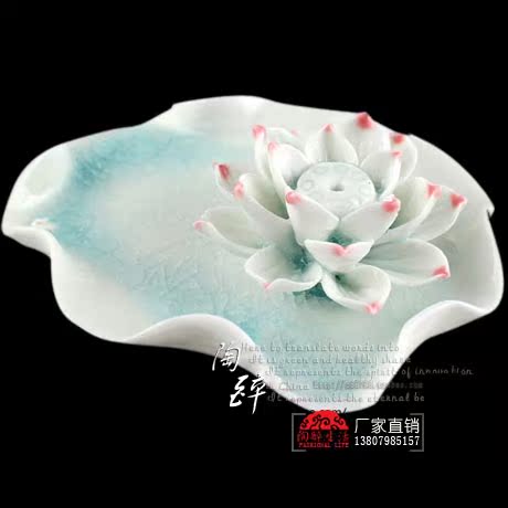 XA003 佛手宝蓝荷叶托茶楼香薰台 蜡烛台烧香台香插 陶瓷