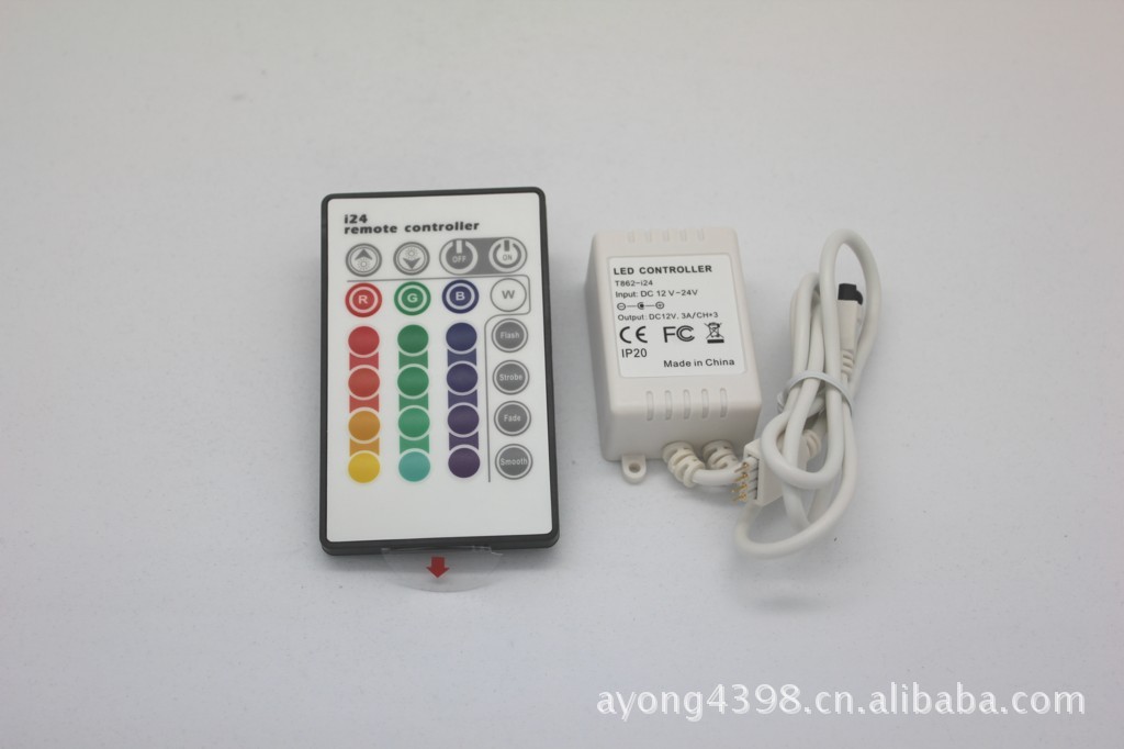 T862(RGB)i24系列调光控制器是一款专用于LED光长照明的智能RGB三色光控制器,采用目前最先进的PWM(脉宽调制)数字化亮度调节技术;可以用IR红外遥控器来远距调光;适用于商业和可明装或者暗装;安装LED控制器可满足商业或家庭照明不同时段与不同环境的光线需要,延长LED寿命,节能省电;LED RGB灯都可以调光变色使用。