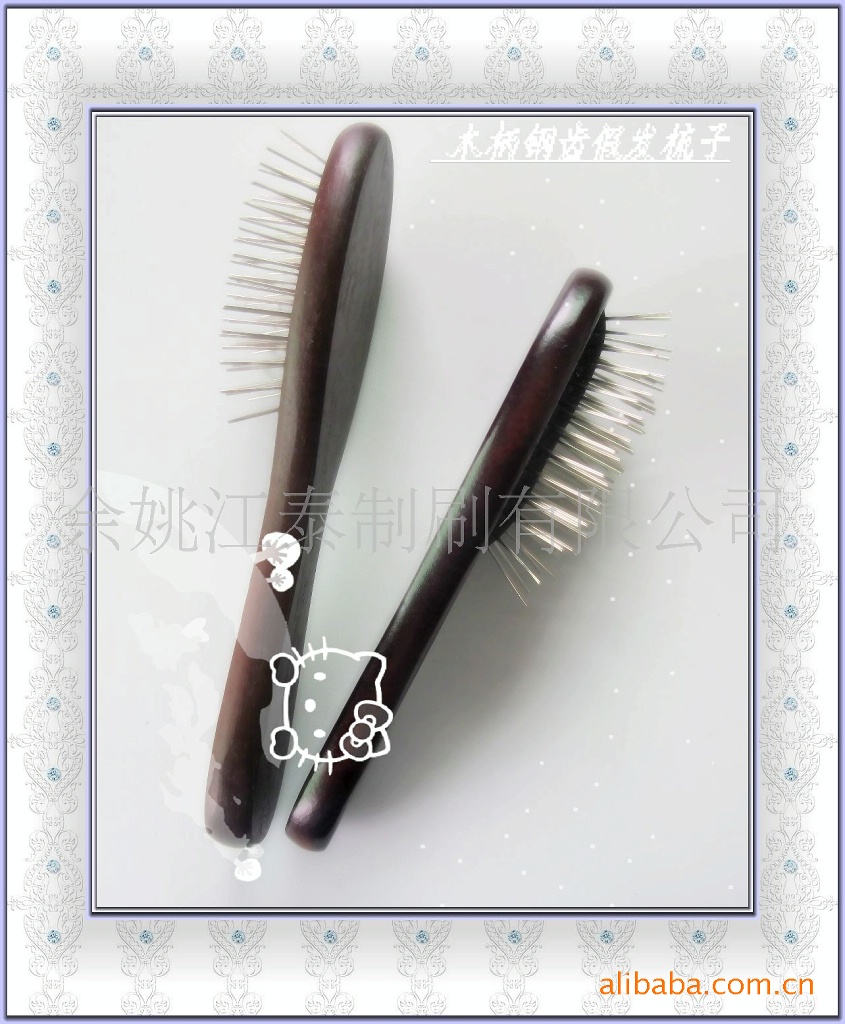 产品材质可以选用荷木,也可以先用榉木,梳齿可以用子弹头的,也可以用无圆头的。手柄喷漆可以透明清漆,也可以色漆。也可以环保油漆。产品尺寸可以根据客户要求做大小,产品上的LOGO可以移印,也可以烫印。包装常规为单个产品PP袋,12个一中盒,144个一外箱