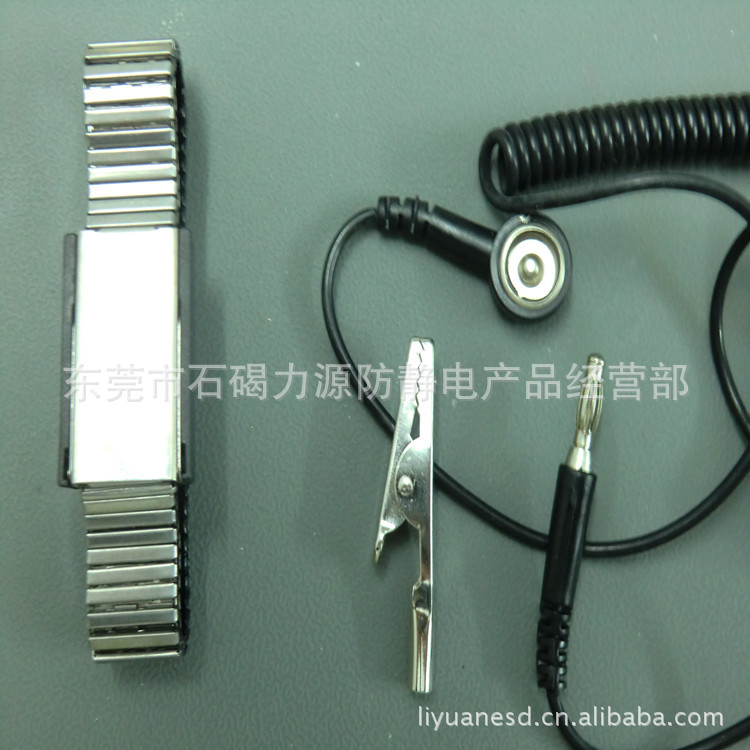 一种配戴于人体手腕上,泄放人体聚积静电电荷的器件。它分为有线型、无线型,有金属环和橡筋导电丝混编环。这款产品属于其中的防静电腕带合扣调节有线型,它可有效保护零阻件,免于受静电之干扰,用以泄放人体的静电。它由防静电松紧带、活动按扣、弹簧软线、保护电阻及夹头组成。松紧带的内层用防静电纱线编织,外层用普通纱线编织。防静电有线手腕带的原理是通过腕带及接地线将人体的静电导到大地。使用时腕带与皮肤接触,并确保接地线直接接地,这样才能发挥最大功效。戴上这防静电腕带,它可以在0.1秒时间内安全地除去人体内产生的静电,接地手腕带是防静电装备中最基本的,也是最为普遍使用的。